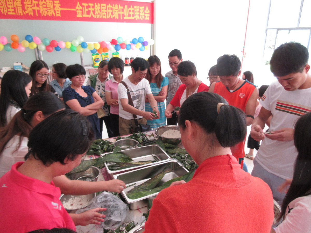 •     為繼承和發(fā)揚民族優(yōu)秀傳統(tǒng)文化,營造和諧社區(qū)氛圍,增強(qiáng)小區(qū)業(yè)主鄰里間感情,豐富小區(qū)業(yè)主業(yè)余文化生活,201668,由金正天然居物業(yè)管理處和天然居銷售部共同主辦、藍(lán)天琴行協(xié)辦的天然居慶端午業(yè)主聯(lián)系暨包粽子大賽在天然居小區(qū)食堂成功舉辦,經(jīng)過前期籌備,活動當(dāng)天共有40余戶業(yè)主和意向客戶參與包粽子比賽,實際到場100余人。